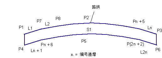 铺装 1 曲面上的路拱点 |