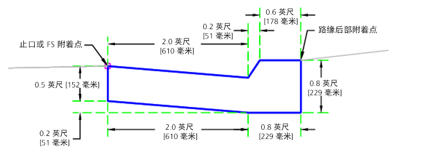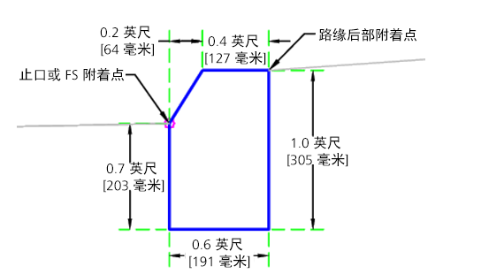 CaltransCurbs 部件可以插入连接,以基于 Caltrans 标准平面 RSP A87A 创建路缘和边沟。