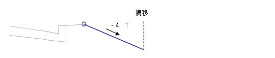 在布局模式中,此部件显示以 -4:1 的坡度绘制到指定偏移的连接。连接的终止箭头指向外部。