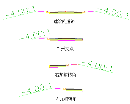 此图形包含原地面曲面以及定义建议的 50 英尺道路红线的路线中线和多段线。