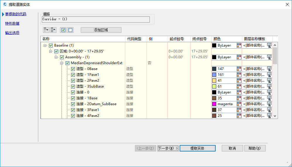选择将道路区域导出为实体还是 [桩号范围/多边形内/所有区域]: