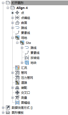 在此选项卡上,图形或项目中的所有对象分层次排列。