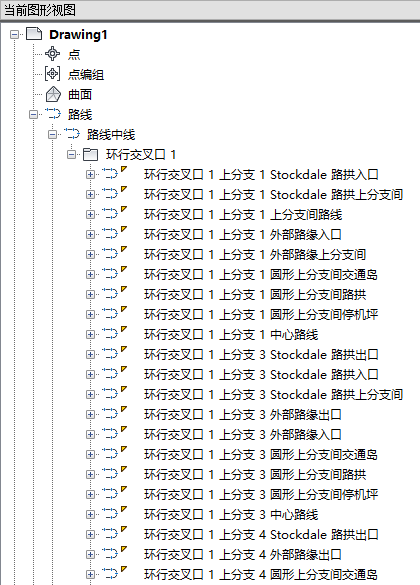 使用“浏览”树中的“环形交叉口”集合,访问图形中的环形交叉口。
