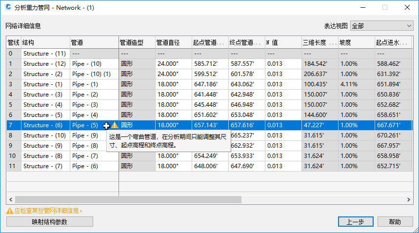 有关详细信息,请参见“网络详细信息”页面(“分析重力管网”对话框)