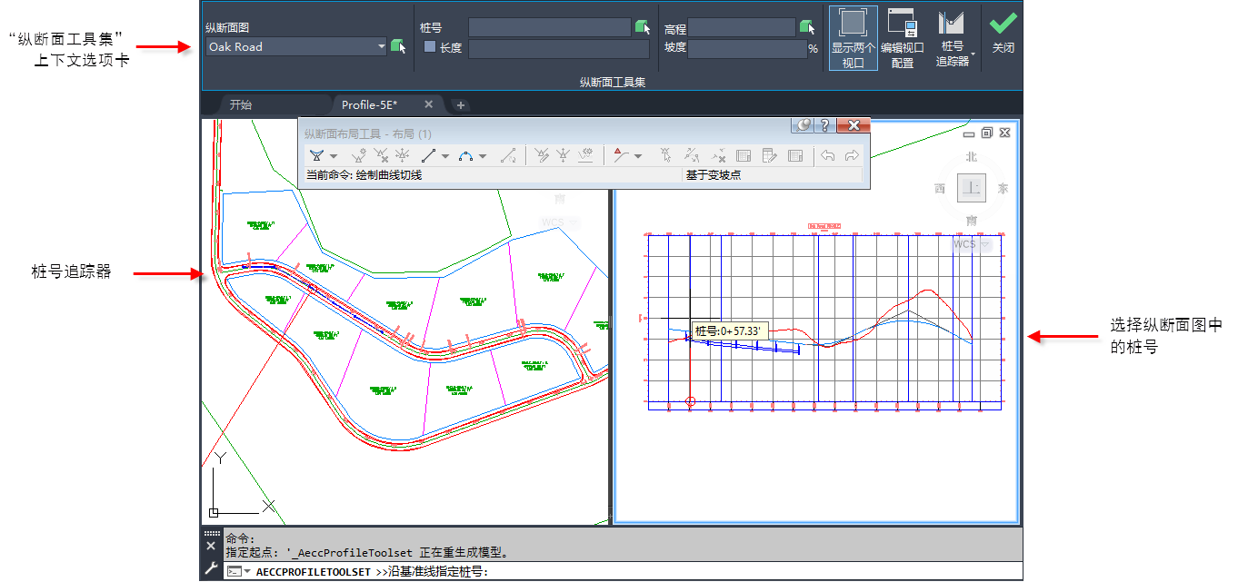 “纵断面工具集”结合了以下透明命令的功能: