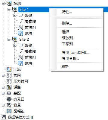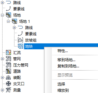 通过右键单击命名场地集合下的“地块”集合,可以访问这些特性。