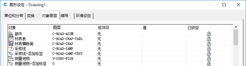 可以在“图形设定”对话框的“对象图层”选项卡上指定对象的默认基层。