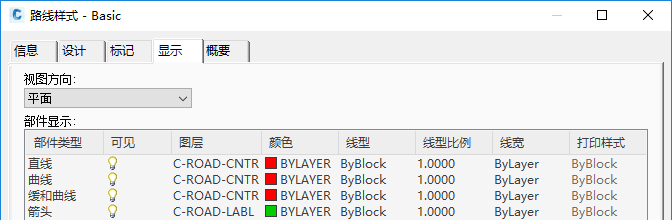 如果您习惯于通过操作图层来控制对象,则可以将各个对象样式的“组件显示”设置设为“随层”。这样,您就可以使用 AutoCAD 图层命令轻松地更改图层设置,而不必通过编辑样式来更改对象组件的颜色、线型、线宽或打印样式。
