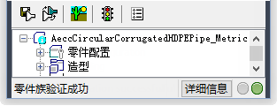 成功完成这些步骤后,将完成对零件的验证并更新状态栏,同时出现一条消息,表明零件验证是否成功。