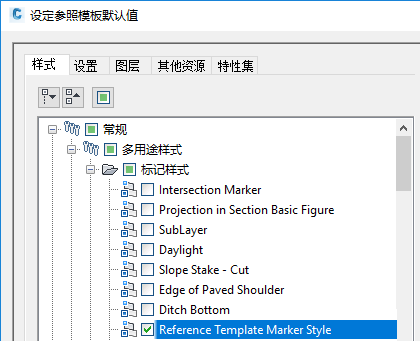 - 选中默认情况下要参照的样式和设定的复选框。在以下示例中,仅选择了“参照模板标记样式”。