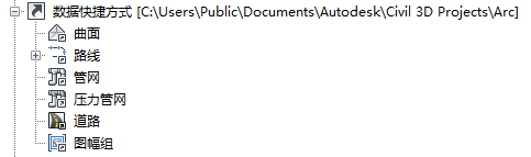 数据快捷方式可用于曲面、路线、纵断面、采样线编组、道路、管网、压力管网和图幅组。