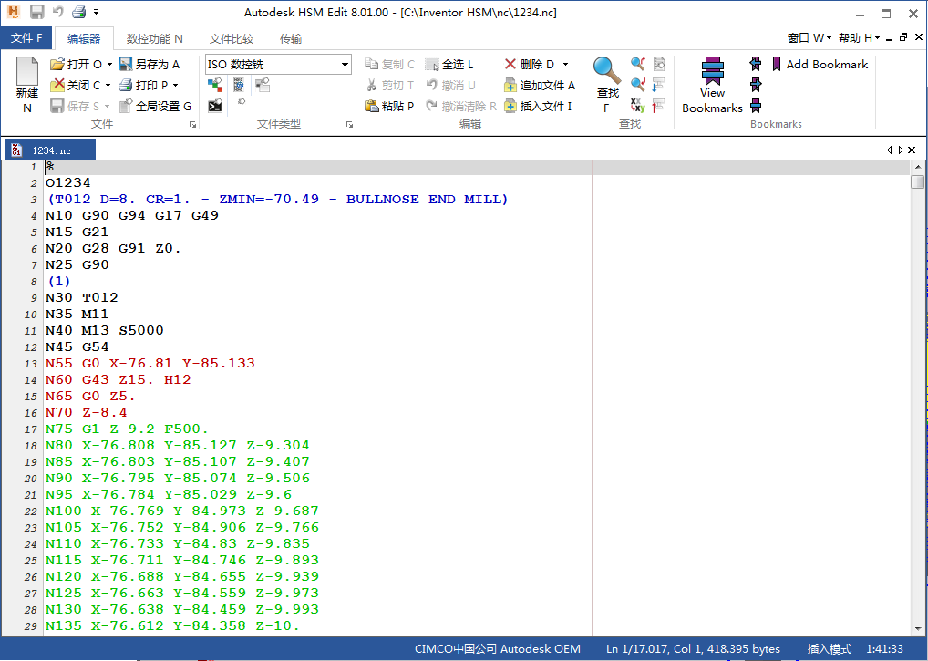 选择正确的后处理器后,按页面底部的“后处理”按钮。如果“在编辑器中打开 NC 文件”处于选中状态,则默认编辑器将打开,并显示 NC 输出。