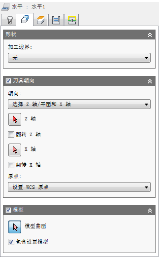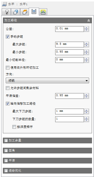 系统提供了一个分阶段向下切削至水平面的选项,这意味着,该策略是粗加工和精加工策略的组合。