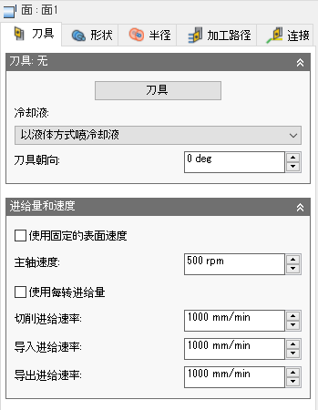 以刀具跨过零件表面的速度表示的切削速度。根据当前的“单位”设置,以“英尺/分钟”或“米/分钟”来表示。