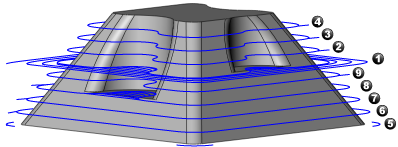 “自适应清洁”刀具路径中的退刀级别。该数字表示加工 Z 层的顺序。
