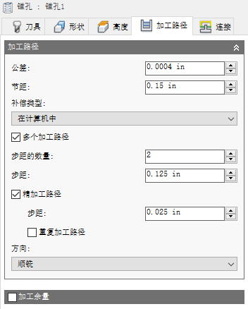 对于粗加工操作,默认值为剩余少量的材料,然后可以通过一次或多次精加工操作移除这些材料。