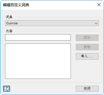 - 单击“编辑”以访问“编辑自定义词典”对话框。在这里,您可以直接向激活的自定义词典中添加单词或从中删除单词。您还可以导入某个自定义词典中的单词并将其添加到激活的词典中。
