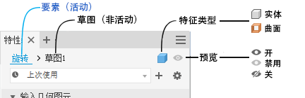 位于特性面板顶部的是面包屑导航。首先要做的是定义特征,但是可以通过单击面包屑导航草图文本在定义特征与编辑草图之间快速切换。单击面包屑导航特征文本可以返回特征环境。
