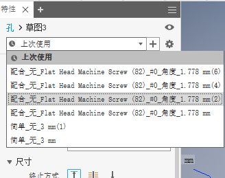 特性面板将会显示,您可以修改孔特征参数。