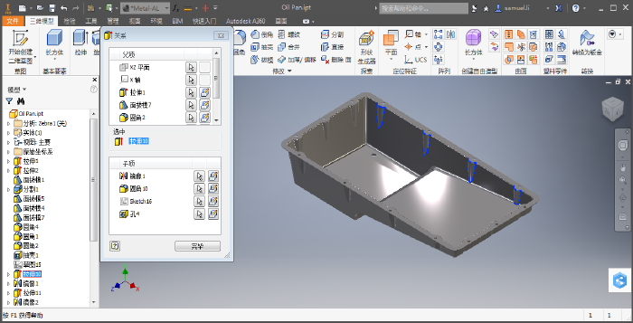 新的特征关系工具可标识零件特征之间的父子关系。这可以帮助您快速了解参数如何定义模型,并可用于执行或自动执行几何图元更改。