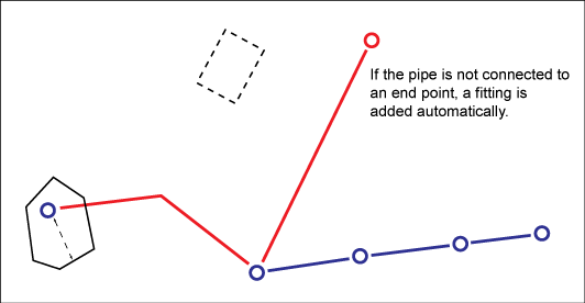 - If you create a pipe with a start or end that is not connected to a network point, by default a fitting is created, see Feature Rule: Create Start And End Nodes.