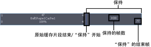 - 双击缓存片段的保持部分上 H 旁边的数字,键入一个代表要保持缓存片段中的最后一个变形的帧数的新值,然后按 Enter 键。
