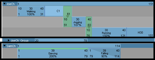 角色集或角色是已设置动画对象、对象部分或属性的集合。如果为尚不是角色集一部分的已设置动画对象创建片段,“Trax 编辑器”(Trax Editor)将自动为该片段创建角色。在“Trax 编辑器”(Trax Editor)中,角色显示为轨迹层次的第一级别。这意味着角色是角色所有轨迹、组和子角色的父对象或最高级别。请参见轨迹层次。