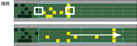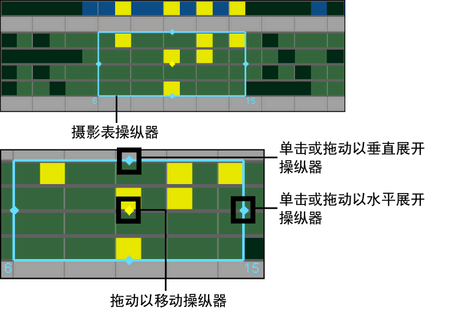 将移动操纵器之外的时间和关键帧,以适合时间和关键帧选定区域的展开或压缩。