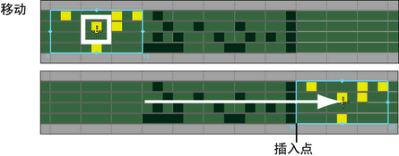 如果在插入点处有时间和关键帧,它们将在时间方向上向前移动,以适应时间和关键帧已复制范围的插入。