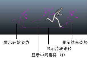 可以显示片段重影,片段重影表示 3D 空间中的片段动画,使您可以预览片段的轨迹并帮助您在片段之间手动匹配姿势。