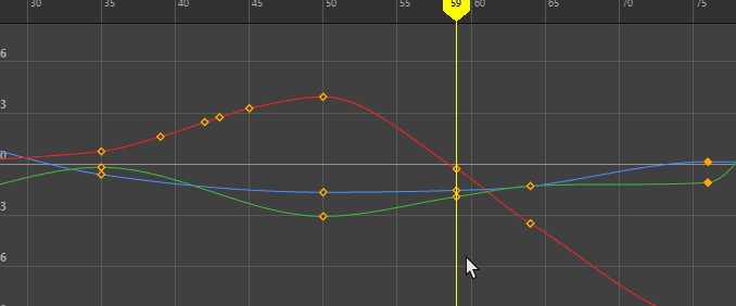 选择损坏的动画曲线(例如,“旋转 X”(Rotate X)、“旋转 Y”(Rotate Y)和“旋转 Z”(Rotate Z)),然后选择。 请参见“曲线图编辑器”(Graph Editor)的“曲线”(Curves)菜单。 |