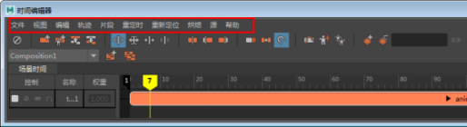 “时间编辑器”(Time Editor)用户界面 (UI) 顶部的菜单栏中获得的选项。但是,许多选项和命令也可通过在