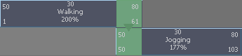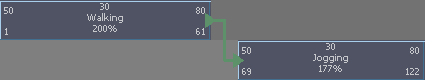 融合动画片段时,如果融合具有类似运动的片段,您将获得最佳结果。例如,创建移动动画片段和运行动画片段的融合。相比之下,融合不同的运动可能不会产生所需的结果。例如,创建运行动画片段和翻滚动画片段的融合可能会创建笨拙的过渡。