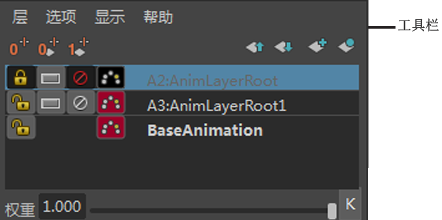 下表介绍了“动画层编辑器”(Animation Layer Editor)工具栏中的按钮。