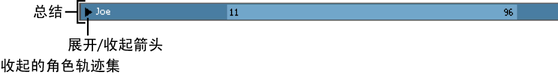 如果收拢了摘要轨迹,则角色、组或子角色下的多个轨迹现在全都显示为一个蓝色片段和轨迹。如果将该轨迹移动到其他位置,则会移动轨迹中的所有片段。