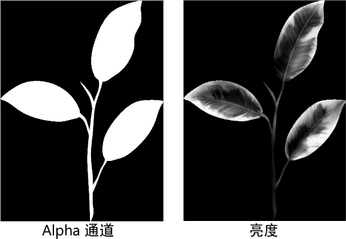 可以导入在其他程序中创建的图像文件,并使用其 Alpha 通道值或亮度值作为属性贴图。Alpha 通道是图像中包含不透明度信息的通道。并非所有图像都具有 Alpha 通道。“亮度”(Luminance)是指图像的强度或明亮度。