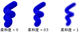 定义希望绘制沿笔划路径的边(对于简单笔划)或沿管的边(对于管的笔划)的柔和度或模糊度。值越高,边越模糊。