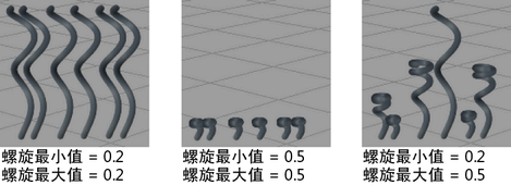 定义绕笔划法线发生的最小和最大螺旋量。“Paint Effects”为新创建的管在该范围内随机选择值。
