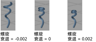 定义螺旋量(紧密度)从管开头到管末端的衰退方式。如果该值为 0,则螺旋是恒定的。如果该值大于 0,将产生较紧密的螺旋,该值小于 0,将产生较松散的螺旋。