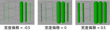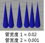 这些设置定义管根部的宽度(宽度 1)和管尖端的宽度(宽度 2)。管宽度在这两个值之间以线性方式更改。