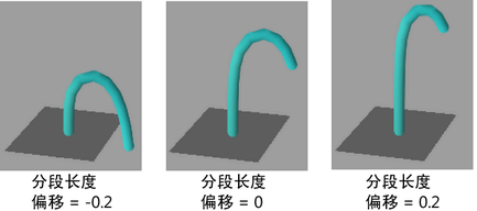 定义按长度分布分段的方式。如果“分段长度偏移”(Segment Length Bias)为 0,则所有管分段的长度相等。如果该值为正值,则靠近根部的分段较长。如果该值为负值,则靠近尖端的分段较长。该值表示较长的分段的比例。