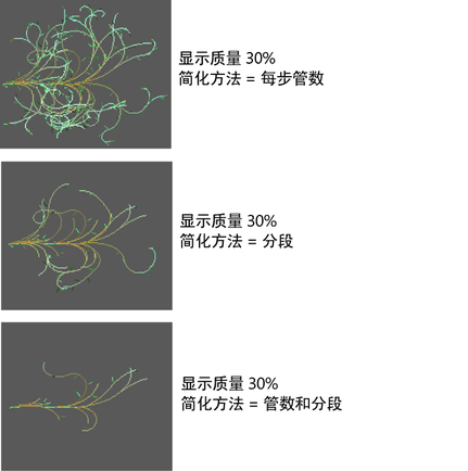 定义管可包含的分段的最大数量。由于管在增长模拟过程的每个步骤中每次增长一个分段,因此分段数定义管的“寿命”。如果增加“分段”(Segments),管长度保持不变,但组成每个管的分段会变得更小。“分段”(Segments)都是笔直的,因此分段越多,管看起来就越平滑,接缝就越少。