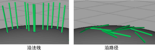 沿曲面法线或为笔划定义的法线生成管。请参见 strokeShape 节点的法线方向(Normal Direction)部分中的“使用法线”(Use Normal)。
