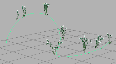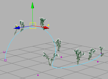 可以通过变换基础笔划路径曲线上的 CV(控制顶点)更改 Paint Effects 笔划的形状。