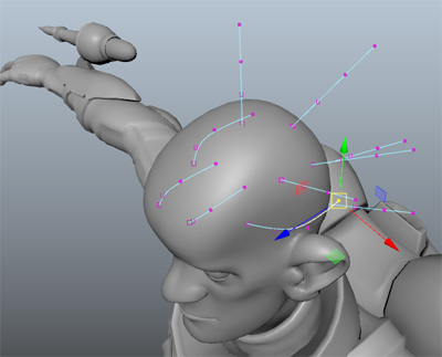 - 选择曲线 CV,然后使用“移动工具”(Move Tool)创建头发样式的基本形状。