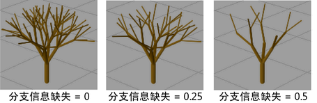 定义随机“删减”以产生更加自然外观的分支的比例。如果“分支修剪”(Branch Dropout)为 0,则每次拆分都将恰好生成“分支数”(Num Branches)定义的数量的分支。