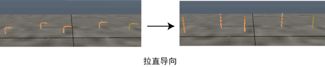 设置选定导向每个分段的拉直程度。“平直度”(Straightness)值升高,导向平直度就会增加。值为 1.0 可拉直到 90 度的角度。