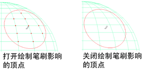 启用该选项后,在曲面上绘制时将显示绘制工具的笔刷轮廓。禁用该选项后,在曲面上绘制时将只显示笔刷指针。默认情况下,“绘制时绘制笔刷”(Draw brush while painting)处于禁用状态。