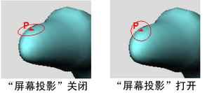 使用“屏幕投影”(Screen Projection)可能会产生涂抹,在涂抹处曲面近似垂直于屏幕,且性能可能会降低。进行简单的翻滚,以使曲面与屏幕大致平行。