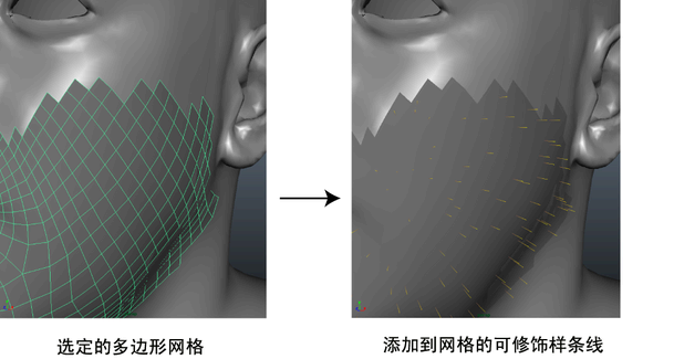 有关使用可修饰样条线的工作流示例,请参见使用可修饰样条线修饰胡须工作流示例。